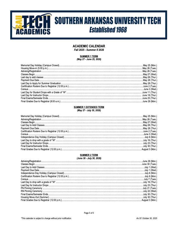 Southern Arkansas University Tech is excited to announce Homecoming Week 2026, taking place February 9–14, 2026.